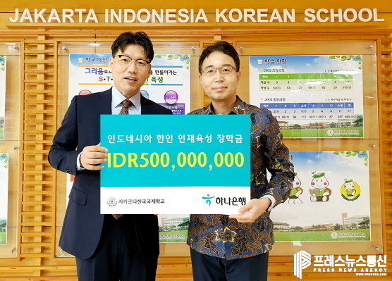[프레스뉴스] 김대일 기자= 하나은행(은행장 이승열)은 글로벌 인재 육성을 위해 10일 인도네시아 자카르타에 소재한 자카르타 한국국제학교(Jakarta Indonesia Korean School)에 장학금 총 5억 루피아(IDR)를 전달했다고 밝혔다.