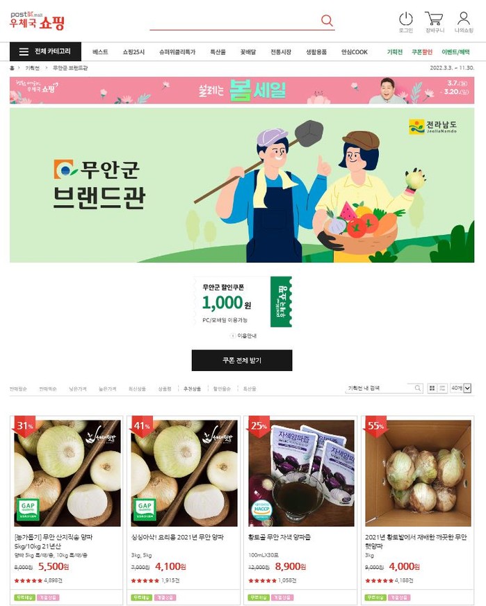 | ▲ 우체국 쇼핑몰 무안군 브랜드관 양파 기획전/무안군 제공 |