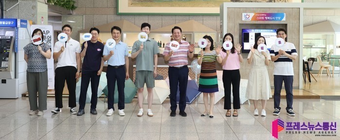 [프레스뉴스] 장현준 기자= 최대호 안양시장과 직원들은 1일 오전 8시 40분 시청 정문 앞에서 반팔셔츠의 가벼운 옷차림에 양산을 쓰고 출근하는 직원들을 맞이했다.