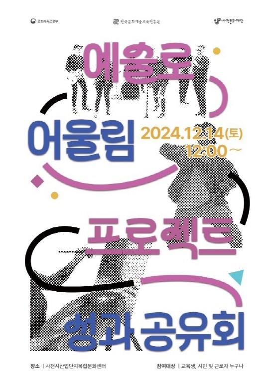 한편, ‘2024 예술로 어울림’ 사업은 문화체육관광부 주최·한국문화예술교육진흥원과 사천문화재단 주관으로 전액 국비 1억 원이 지원되는 공모사업이다.