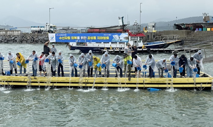 방류식에는 지역 어업인들과 해양 관련 단체 등 40여 명이 공동으로 참여했다.