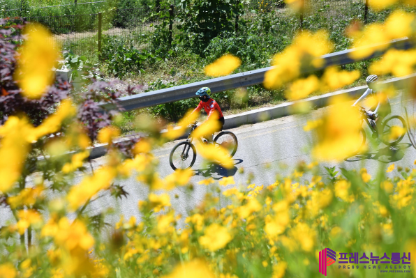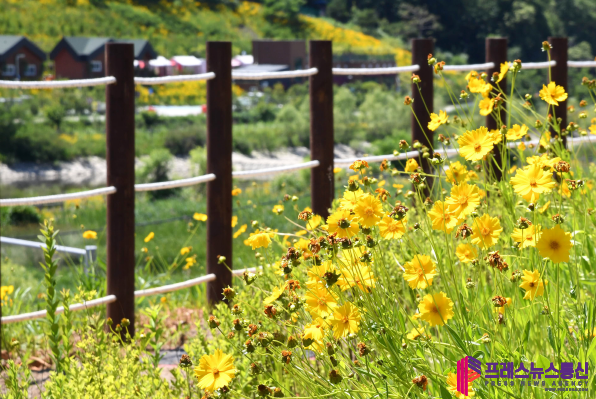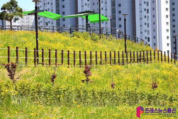 [프레스뉴스] 장현준 기자= 연둣빛에서 초록으로 짙어지는 신록과 탐스럽게 피어난 샛노란 금계국이 융단처럼 펼쳐진 길이 잘 어우러진 시흥시 따오기문화공원이 설레는 첫 여름을 맞이했다.