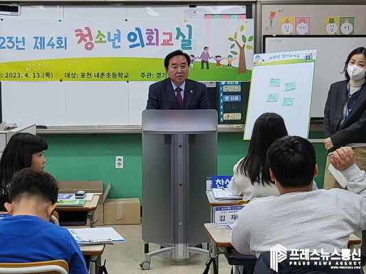[프레스뉴스] 김대일 기자= 경기도의회 김성남 농정해양위원장(국민의힘, 포천2)은 지난 13일 내촌초등학교에서 진행된 『2023년 제4회 청소년 의회교실』에 참석하여 학생들을 격려했다.
