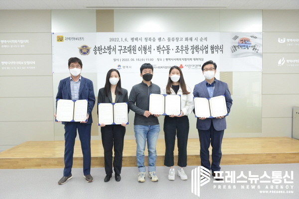 고(故) 이형석 소방경, 고 박수동 소방장, 고 조우찬 소방교 등 3명의 순직 소방공무원 유족들은 18일 평택지역 저소득 가정 청소년을 위해 장학사업을 추진하기로 하고 평택행복나눔본부와 협약식을 진행했다.
