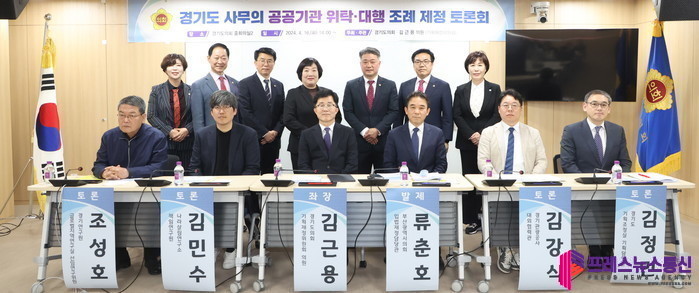 [프레스뉴스] 류현주 기자= 경기도의회 기획재정위원회 김근용 위원(국민의힘, 평택6)이 좌장을 맡은 「경기도 사무의 공공기관 위탁·대행 제정 토론회」가 4월 16일(화) 경기도의회에서 경기도 및 경기도 소속 공공기관 직원들이 참석한 가운데 개최됐다.
