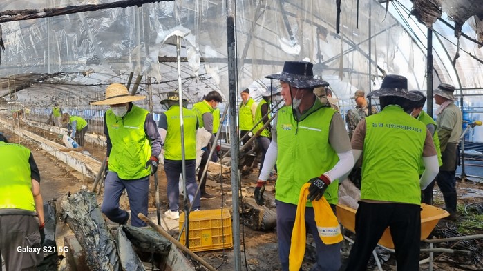 농협전남지역본부와 대전면예비군면대, 대전면사무소는 25일 대전면 중옥리 비닐하우스 화재 현장을 방문해 화재 피해복구