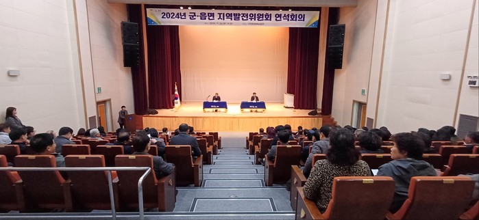 이날 회의에는 군ㆍ읍면 위원회 위원, 군의원 등 120여 명이 참석하였으며 리더십 관련 특강과 군정 현안 정책 토론이 진행됐다.