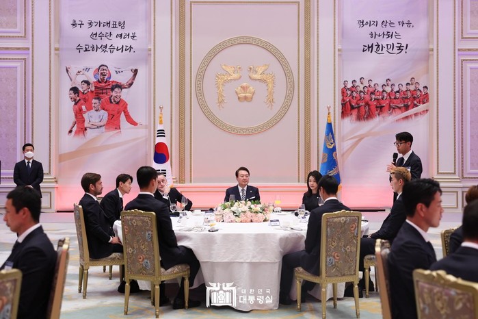 이번 만찬은 2010년 남아공 대회 이후 12년 만에 원정 두 번째 16강행을 달성한 축구 국가대표팀과 관계자들에게 깊은 감사의 인사를 전하기 위해 마련됐다.