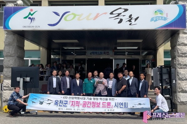 [프레스뉴스] 류현주 기자= 옥천군이 21일 군청 중앙현관 앞에서 ‘지적·공간정보 드론 시연회’를 개최했다.