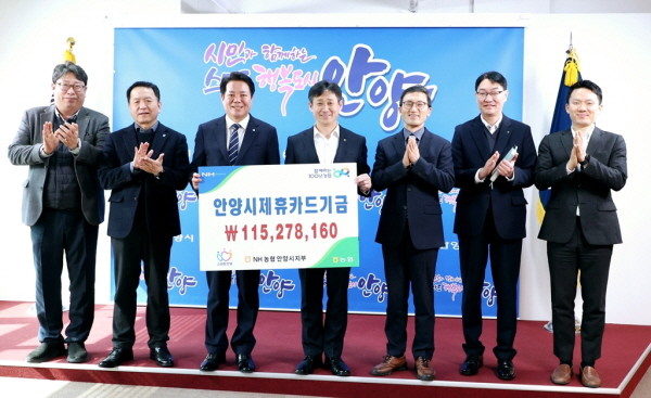 [프레스뉴스] 장현준 기자= 안양시가 NH농협으로부터 지난해 안양사랑 신용카드 사용적립금 1억1528만여원을 전달받았다.
