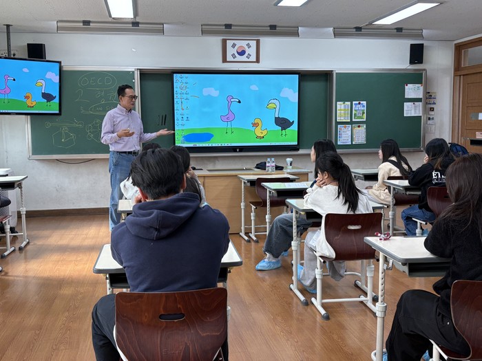 | ▲객원교수 교육기부 특강이 진행되고 있다./전남교육청 제공 |