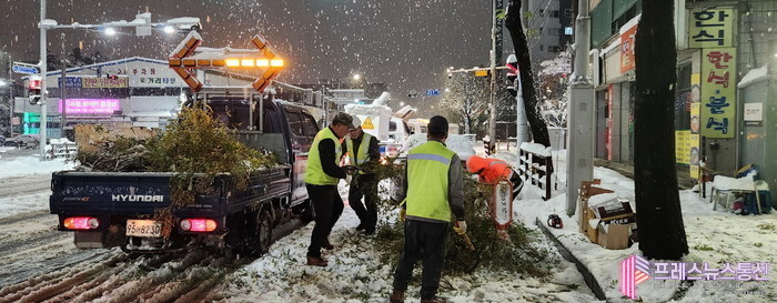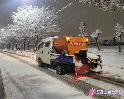 시는 이에 대응하기 위해 28일 전 직원 제설 비상근무를 지시했으며, 총 610명의 인력을 27개 부서와 20개 동에서 동원하고, 144대의 제설 장비(제설 차량 41대, 살포기 64대, 제설삽날 39대)와 함께 제설작업을 진행 중이다. 주요 도로와 이면도로에 650톤의 제설제를 살포해 도로 정비를 신속하게 시행하고 있다.