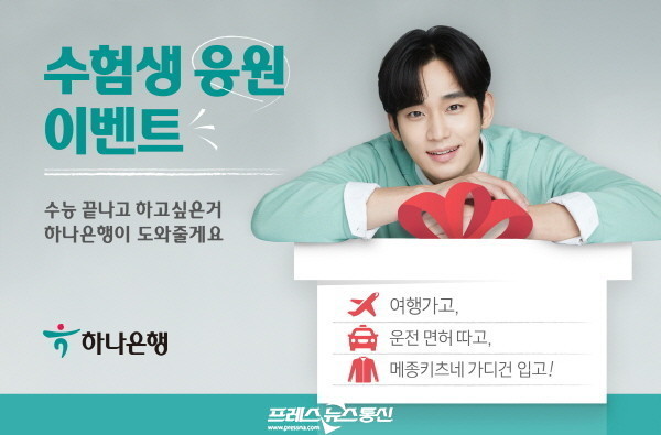 [프레스뉴스] 김대일 기자= 하나은행(은행장 박성호)은 코로나19 어려움 속에서도 최선을 다한 수능 수험생을 응원하고자 ‘수능 끝나고 뭐할까?’ 이벤트를 11월 10일부터 30일까지 진행한다고 밝혔다.