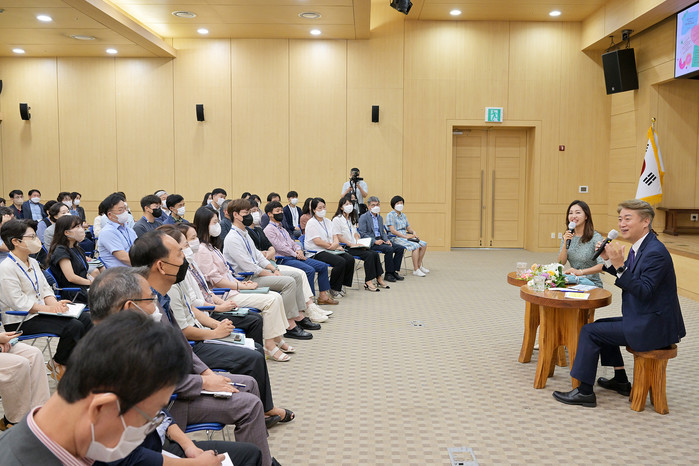 [광주=프레스뉴스] 강래성 기자= 김이강 서구청장이 직원과의 대화 시간을 가지며 소통 행보에 나섰다.