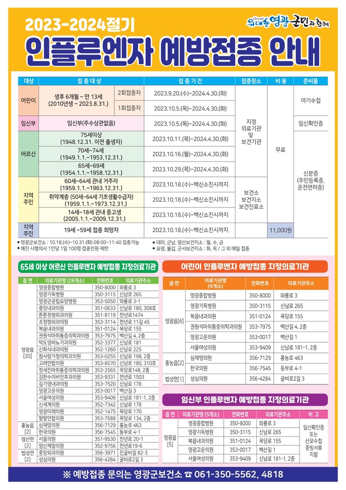 | ▲인플루엔자 예방접종 안내문(사진제공=영광군) |