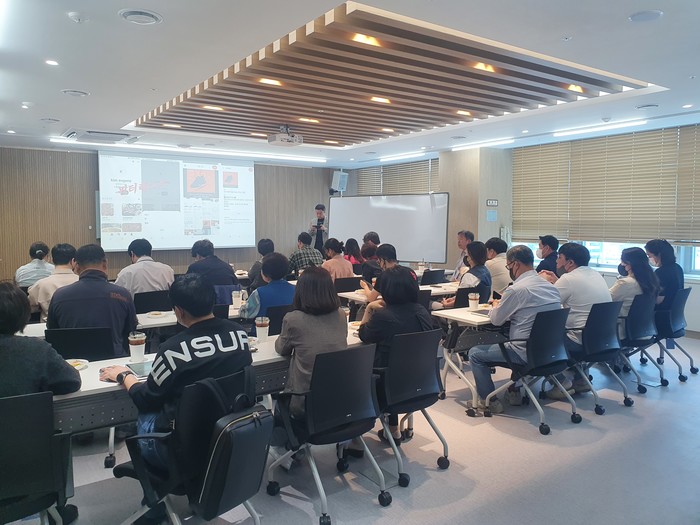 | ▲장사의 신이라 불리는 김유진 외식업 컨설턴트가 목포 소상공인을 대상으로 강의를 펼치고 있다.(사진제공=목포시) |