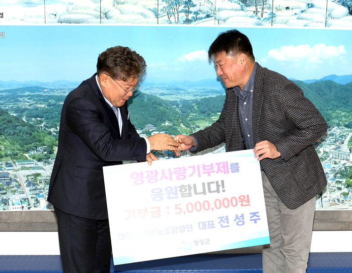이번 기부 행사를 마친 후 전성주 대표는 “이번 기부금이 영광군의 발전과 지역경제 활성화에 조금이나마 도움이 되길 바란다”며 “앞으로도 기회가 닿는대로 주변 소외계층을 돕도록 노력하겠다”고 전했다.