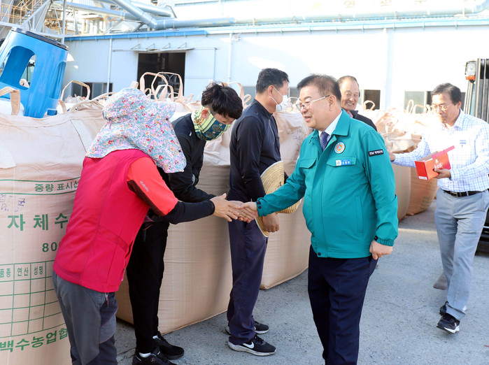 [전남=프레스뉴스] 차윤기 기자= 전남 영광군(군수 강종만)은 추곡 수매기간을 맞아 지난 16일 2023년산 산물 벼를 매입하고 있는 영광RPC·백수RPC·염산DSC·굴비골DSC 등 4개소를 방문 관계자 및 농업인들을 격려하고 애로사항 등을 청취하였다고 밝혔다.