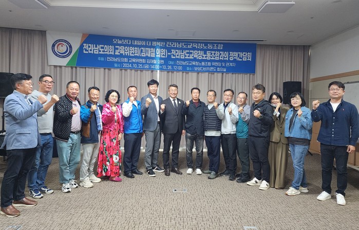 [전남=프레스뉴스] 강래성 기자= 전남도의회 교육위원회 김재철 의원(더불어민주당ㆍ보성1)은 지난 10월 25일, 보성다비치콘도 예향홀에서 전라남도교육청노동조합과의 정책간담회를 개최했다.