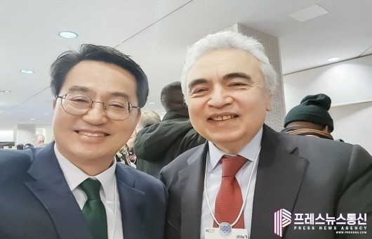 | ▲17일 오후(스위스 현지 시간) 다보스에서 김동연 경기도지사가 파티 비롤 (Fatih Birol) IEA사무총장을 면담하였다.(사진= 경기도) |