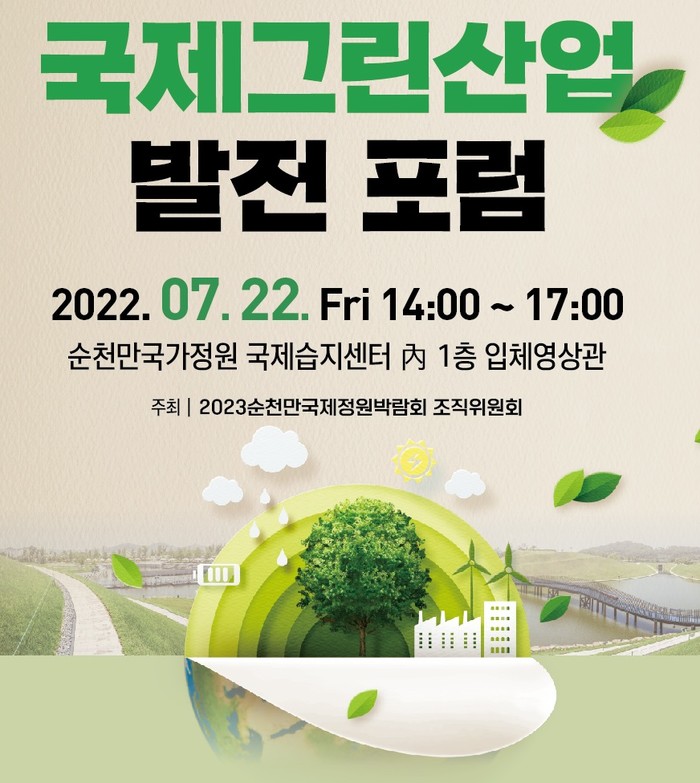 [전남=프레스뉴스] 강래성 기자= 순천시(시장 노관규)는 2023순천만국제정원박람회 개최에 발맞춰 오는 22일 14시 순천만국제습지센터 입체영상관에서 ‘국제그린산업 발전포럼’을 개최한다.