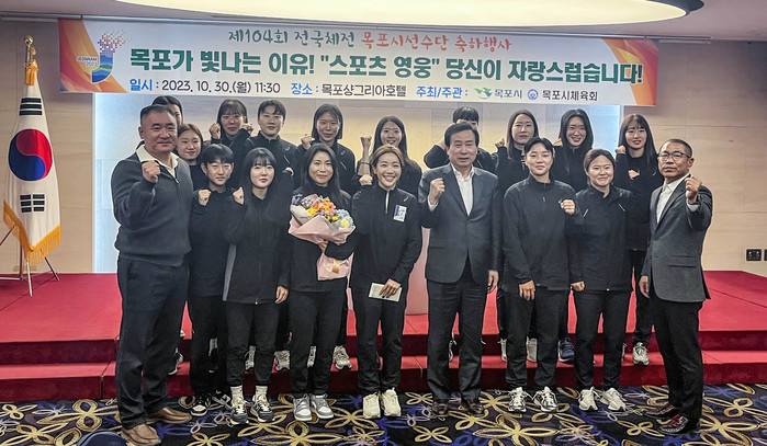 | ▲목포시가 제104회 전국체전에서 활약한 선수들을 격려했다.(사진제공=목포시) |