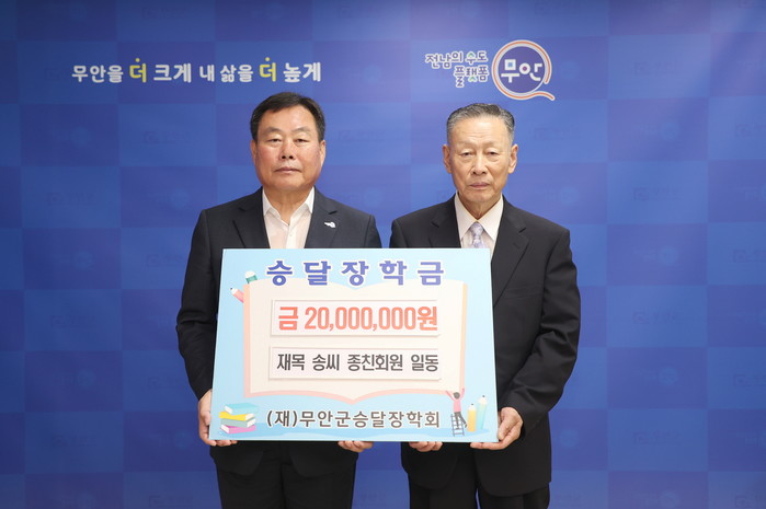 [전남=프레스뉴스] 강래성 기자= 전남 무안군(군수 김산)은 13일 재목 송씨종친회(회장 송기창)가 (재)무안군승달장학회에 장학금 2,000만 원을 기탁했다고 밝혔다.