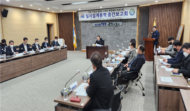▲ 영광군은 강종만 군수와 군의회 의원, 부군수, 실과소장 및 주민대표 등 30여 명이 참석한 가운데 '국도77호선 영광군 스마트복합쉼터 조성사업 실시설계용역' 중간보고회를 개최했다.(사진제공=영광군) |