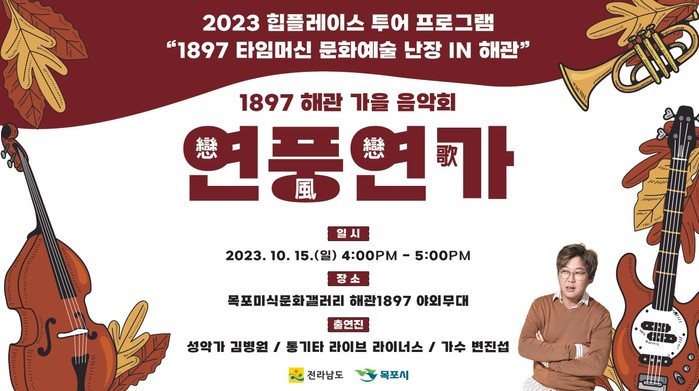 1897해관 가을음악회 ‘연풍연가(戀風戀歌)’는 목포시에서 진행하는 2023힙플레이스 투어 프로그램의 일환으로 진행하는 행사다.
