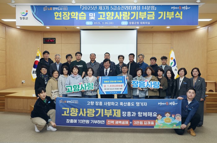 [전남=프레스뉴스] 강래성 기자= 지방자치인재개발원 제3기 5급 승진리더과정 14분임 교육생들이 장흥 현장학습 기간 중 160만원의 고향사랑기부금을 기탁했다.