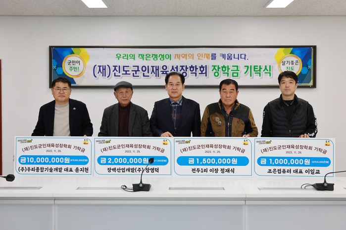 기탁자들은 “진도의 미래를 이끌어 나갈 지역 인재 육성에 작은 보탬이 돼 기쁘고, 많은 사람들이 지역 인재 육성에 동참할 수 있도록 앞으로도 계속해서 장학금을 기탁하겠다”고 말했다.
