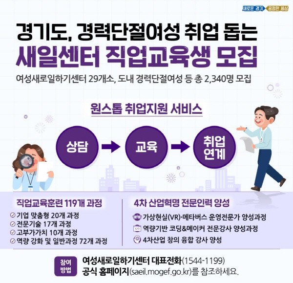 ▲ 경기도, 경력단절여성 취업 돕는 새일센터 직업교육생 모집 포스터(사진=경기도북부청) |