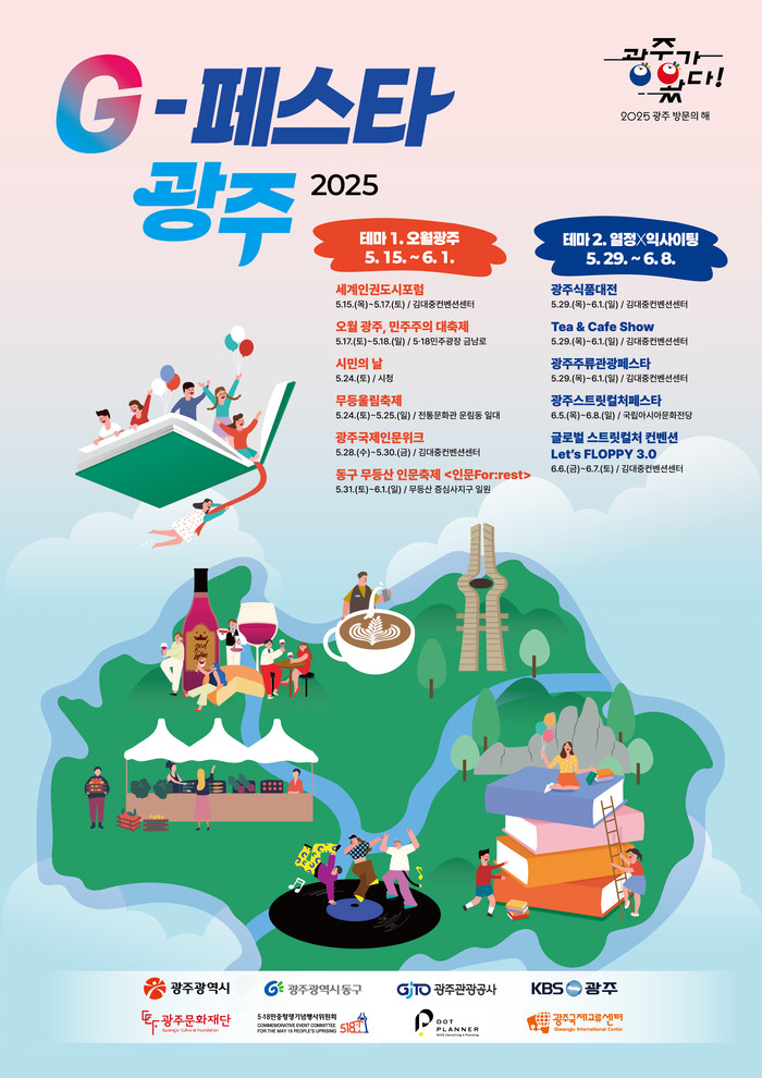 광주광역시(시장 강기정)는 ‘2025 광주 방문의 해’를 맞이하여 ‘G-페스타 광주’를 5월부터 6월까지 2개의 테마로 구성해 확대 운영한다고 밝혔다.