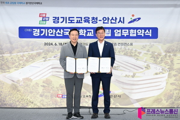 안산시는 18일 오전 경기도교육청에서 ‘(가칭)경기안산국제학교 설립을 위한 업무 협약을 체결했다’고 밝혔다. 협약식에는 이민근 안산시장과 임태희 경기도교육감, 김태훈 경기도안산교육지원청 교육장 등 관계자들이 참석했다.