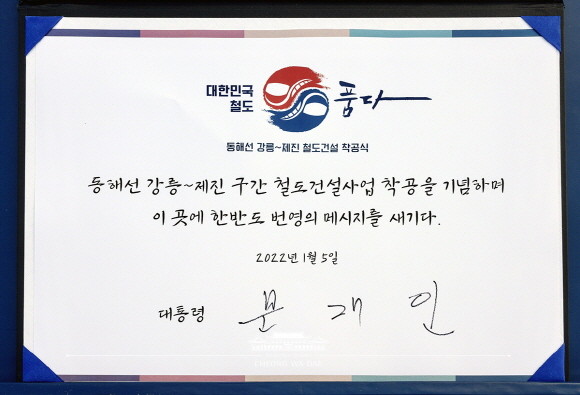 마지막으로 문 대통령은 “평화가 강원도의 경제이고 미래”라면서 “동해북부선 건설을 계기로 평화에 더해 경제협력이 실질적으로 이뤄지고, 함께 잘사는 강원도로 도약하길 기대한다”고 밝혔다.