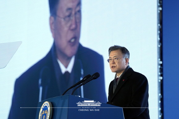 문 대통령은 이날 새해 첫 현장 방문으로 강원도 고성군 제진역에서 열린 동해선 강릉-제진 철도건설 착공식에 참석해 “이로 인해 긴장이 조성되고, 남북관계의 정체가 더 깊어질 수 있다는 우려가 있다”며 이같이 밝혔다.