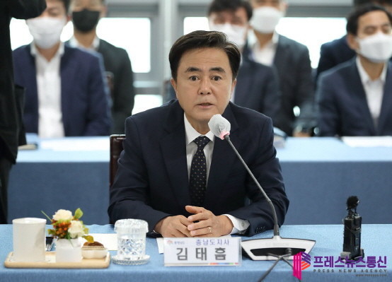 | ▲ 29일 오전 충남도청 5층 상황실에서 열린 경기-충남 상생협력 업무협약식에서 김태흠 충청남도지사가 인사말을 하고 있다.(사진=경기도) |