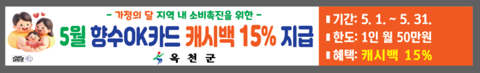 황규철 옥천군수는 “지역 소상공인들이 요즘 너무 힘든 상황이다. 5월에는 향수OK카드 15% 캐시백 혜택을 적극 활용해 가급적 지역 내에서 외식하고 선물을 구입해 주시길 바란다”고 말했다.