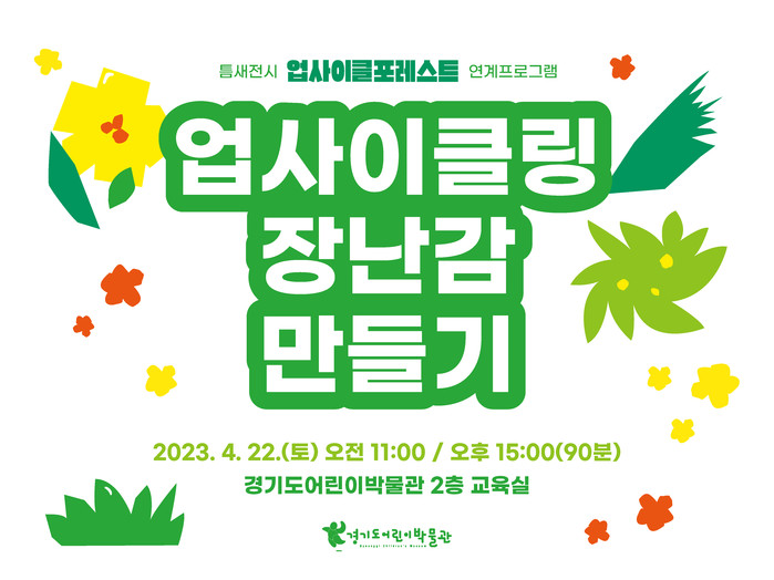 [프레스뉴스] 김대일 기자= 경기문화재단 경기도어린이박물관(관장 직무대리 김지희)은 2023년 4월 22일(토) ‘지구의 날’을 맞아 틈새전시 《업사이클 포레스트》 연계프로그램 <업사이클링 장난감 만들기>를 진행한다.