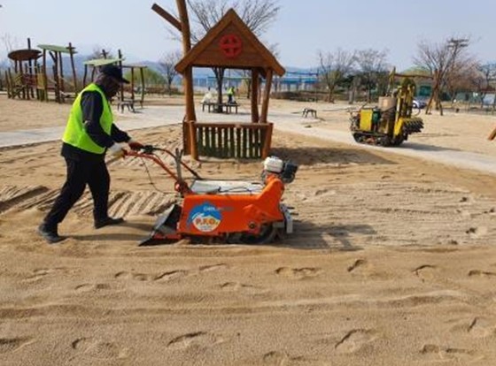 모래놀이터의 위생관리는 3단계로 실시된다. 먼저, 매일 이물질과 쓰레기를 청소하는 일상 관리가 이루어진다. 다음으로 주 2회 이상 모래를 뒤집어 일광소독을 실시하고, 방문객이 늘어나는 봄~가을철에는 고온스팀기 등 전문 장비를 활용해 모래를 살균한다.