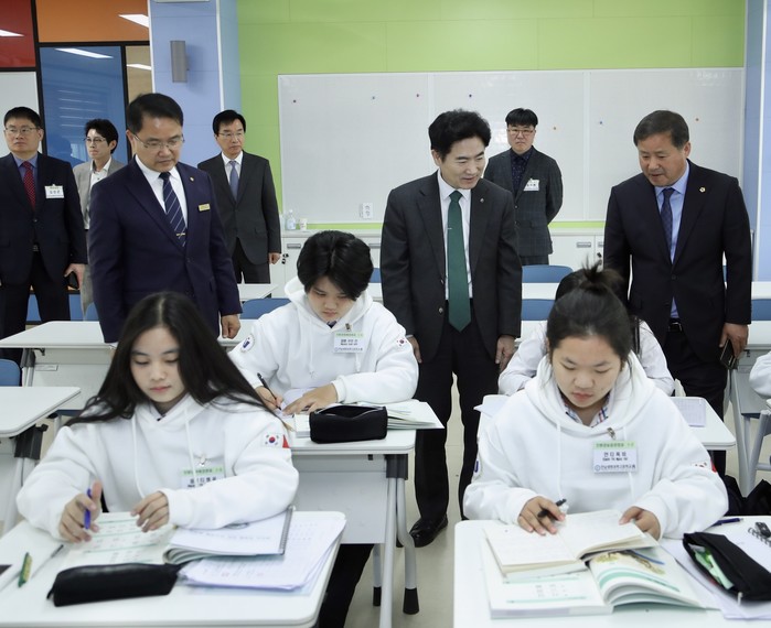 | ▲김대중 전남교육감이 지난 2일 전남생명과학고 외국인 유학생 수업을 참관하고 있다./전남교육청 제공 |