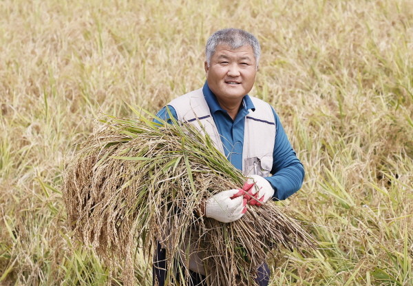 | ▲ 수확의 기쁨 누리는 박철우 농민(사진=함양군) |