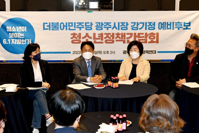 [광주=프레스뉴스] 강래성 기자= 광주 청소년 단체들과 강기정 더불어민주당 광주광역시장 예비후보가 청소년들의 건강한 성장을 돕기 위해 머리를 맞댔다.