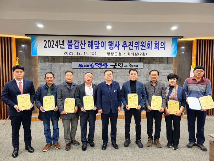 이번 행사의 원활한 추진을 위하여 지난 12월 14일 영광군청 2층 소회의실에서 2024 불갑산 해맞이 행사 추진위원회 민간위원 위촉장 수여와 회의를 개최하였다.