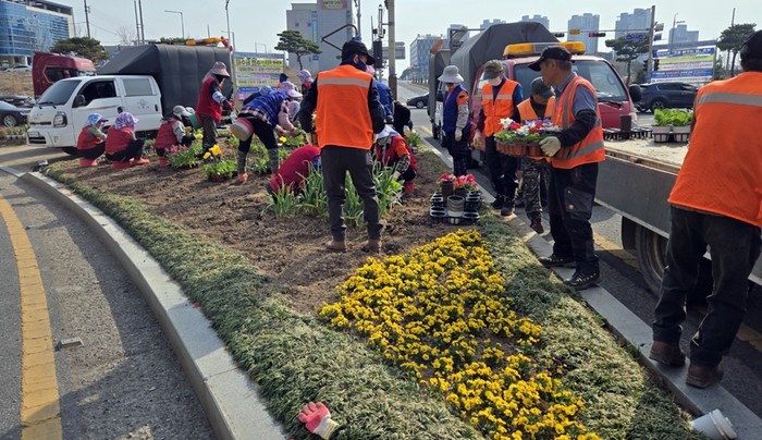 | ▲나주시, 봄맞이 주요 도로변 교통섬 꽃식재/나주시 제공 |