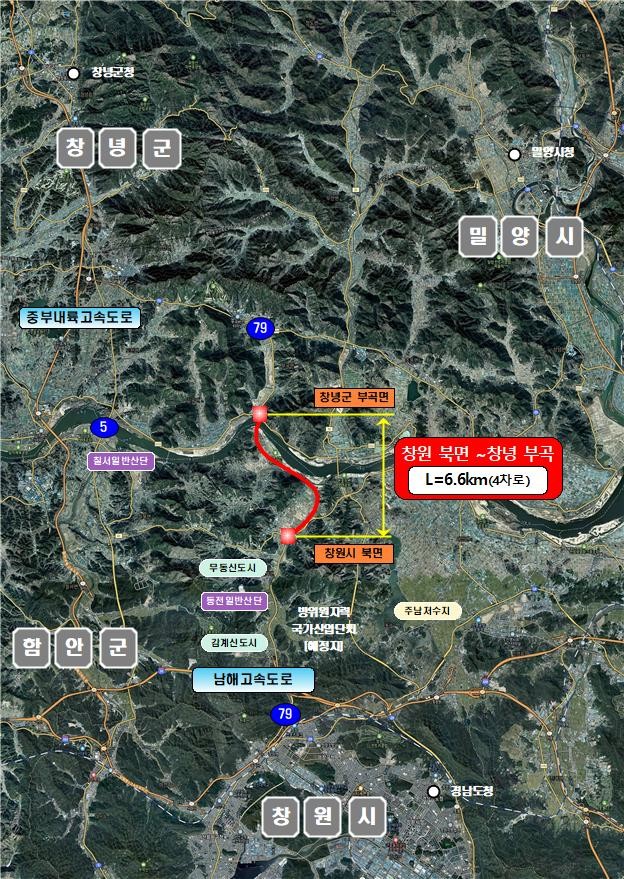 국도 79호선 창녕 부곡~창원 북면 도로 신설사업은 낙동강을 사이에 두고 단절된 국도를 부곡온천대교 건설로 연결해 시군 간 접근성을 향상하고 부곡온천 및 마금산온천 관광 활성화에 기여할 것으로 기대된다.