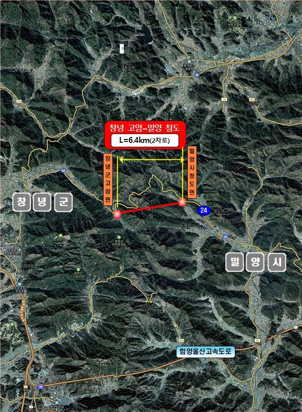 국도 24호선 창녕 고암~밀양 청도 구간은 도로 선형 불량 및 급경사로 인해 교통사고 위험이 높은 도로로, 개량 사업을 통해 도로 안전성을 확보하고 연결 교통망이 개선될 전망이다.