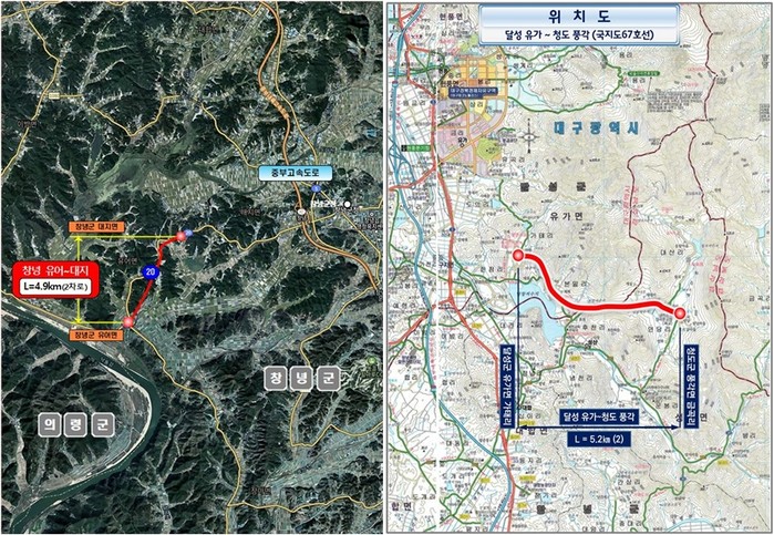 | ▲창녕군 대지면~창녕군 유어면, 달성군 유가면~청도군 풍각면 위치도 (사진=창녕군) |