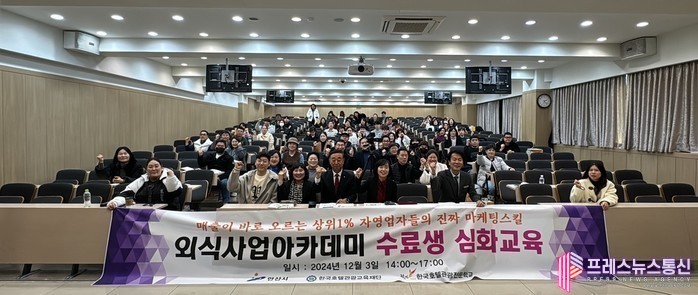 [프레스뉴스] 장현준 기자= 안산시 상록구(구청장 이정숙)는 지난 3일 한국호텔관광실용전문학교 미래관 데몬홀에서 안산시 외식사업 아카데미 수료생 100여 명을 대상으로 마케팅 전략 심화교육을 진행했다고 4일 밝혔다.