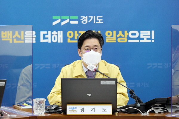 ▲ 15일 오전 경기도청 신관1층 재난상황실에서 오병권 경기도지사 권한대행과 경기도 31개 시·군 부단체장이 참석한 가운데 영상회의 방식으로 경기도 재정 신속집행 시·군 점검회의가 열리고 있다.(사진=경기도) |